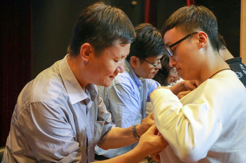 “少年智则国智,少年强则国强”,激昂的《少年中国说》表达了莘莘学子对祖国深深的热爱和立志做有为青年的决心。而《稳稳的幸福》则展现了新生们对大学生活最美好的憧憬和向往。悠扬的乐器声余音绕梁,新生与家长的采访视频则使许多同学热泪盈眶。每一个节目都经过了精心的准备和认真的排练,台上的每一幕都饱含着每一位演员和工作人员辛勤的汗水。这些节目充分向学院领导展现了物理学子多才多艺、自信昂扬的风采。激起在座同学们的阵阵掌声,鼓掌经久不息。
