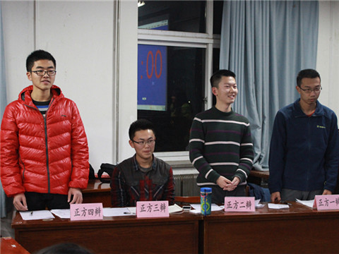 12月6日晚,面向14级新生辩手的“四院辩论赛”于材料馆307进行了物理与光电工程学院对抗材料科学与工程学院的激烈比拼,我院作为正方就“贫穷/富贵更容易滋生丑恶”的辩题同反方辩友展开了精彩的对决。最终,我院以轻微弱势不敌对方。